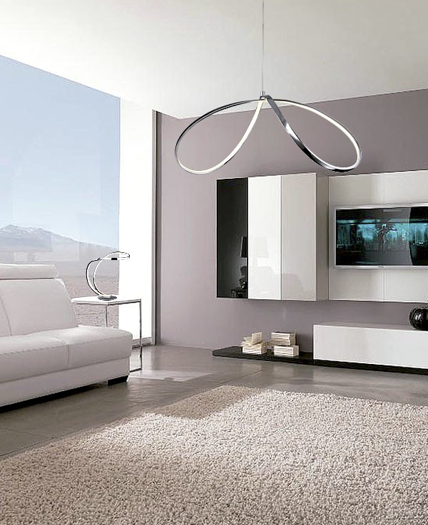 Esta lámpara colgante pertenece a la familia Euphoria en la que se destaca su diseño moderno e innovador. Está hecha en Aluminio cromado que permite una excelente disipación térmica con difusor opal que difumina la luz a través del material. Dispone de tecnología con Led Integrado 30W de potencia, 2400 lúmenes. Su tonalidad es de 4000K neutro. Sus dimensiones son 72x32x120 cm (largo x ancho x alto). Produce un efecto lumínico radial gracias a su diseño envolvente permitiendo así una dispersión homogénea de la luz para cualquier estancia. Es regulable en altura sin necesidad de desmontaje. Producto disponible en plata.