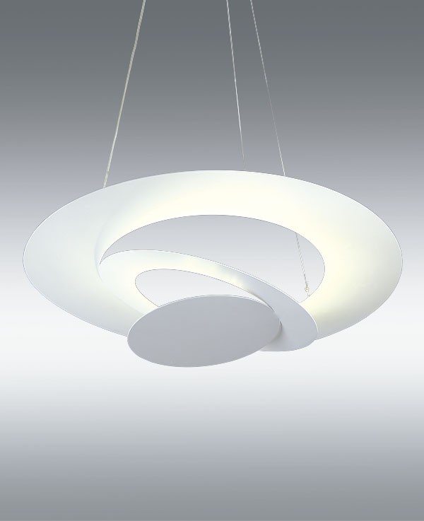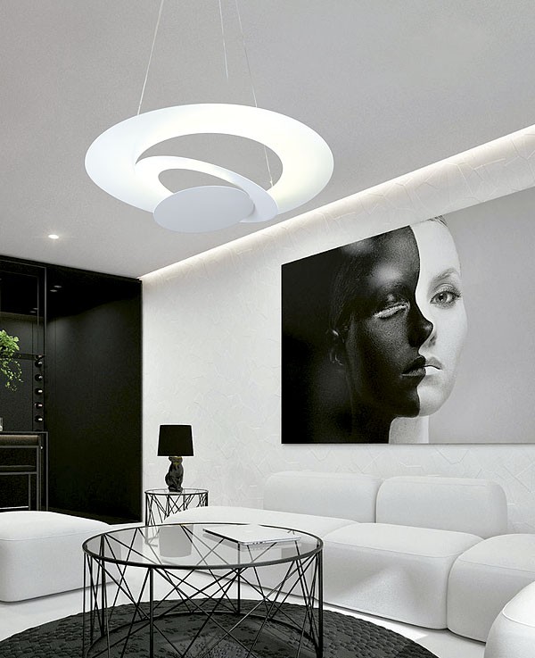 Lámpara colgante Heaven en Metal/Metacrilato y acabado pintura Epoxi blanco. Posee tecnología de Led Integrado con 58W de potencia, 4000 lúmenes. Con una tonalidad de 4000K neutro. Sus dimensiones son Ø50x120 cm (Diámetro x Alto). El efecto lumínico producido resulta en una luz radial indirecta ideal para centros de mesa donde combinamos ambientes más íntimos con diseño.