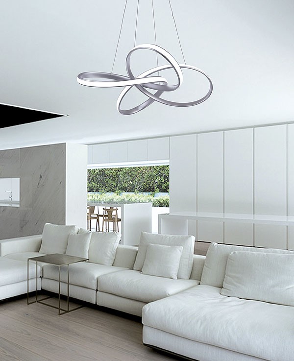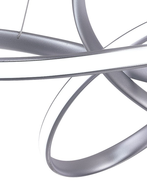 Lámpara de techo colgante de la familia Orbital LED 55W 3600lm RF/App dimmer + CCT color variable. Acabado plata