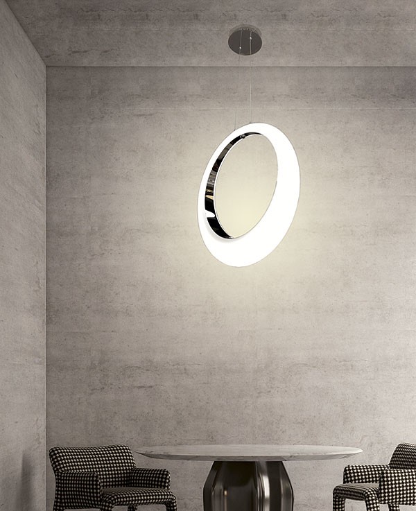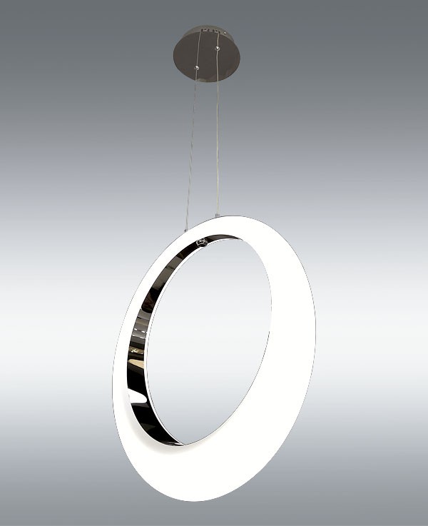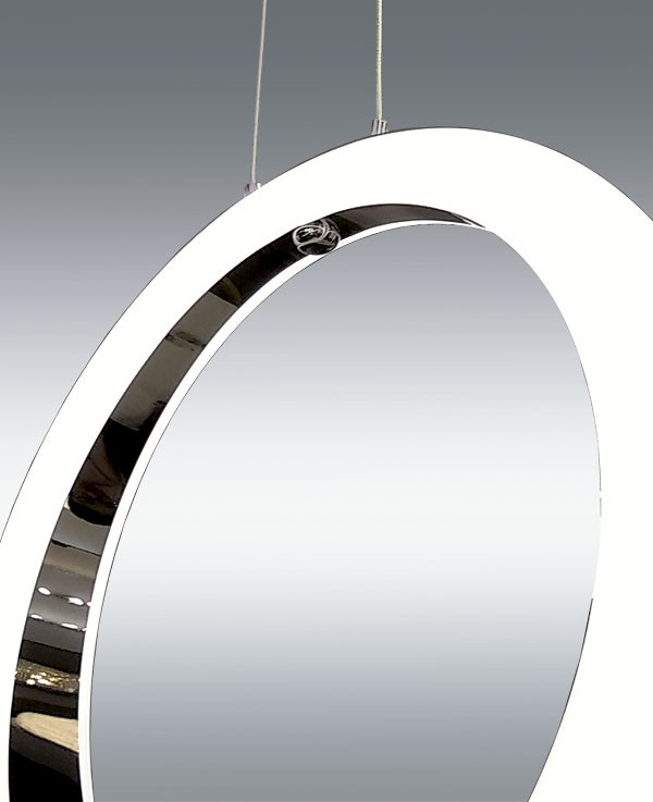 Lámpara colgante LED 42W 3200lm. Mando a distancia control de intensidad y color CCT variable 3000K -6000K. Acabado cromo.