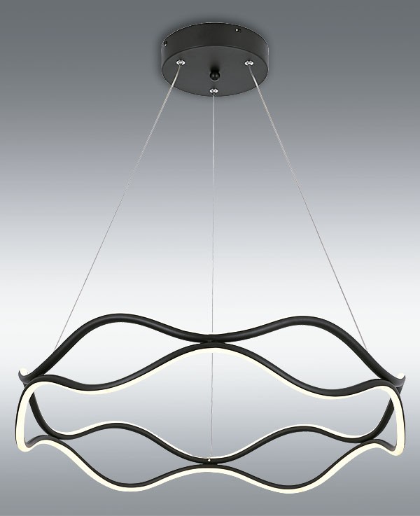 Lámpara colgante Venus con un diseño moderno y de calidad. Su acabado es en pintura epoxy negra. Está realizado en Aluminio con difusor de silicona. Posee tecnología de Led Integrado con 140W de potencia, 11200 lúmenes, mando a distancia con control de intensidad y color CCT variable 4000K-3000K-6000K. Sus dimensiones son Ø80x15x150 cm (Diámetro x Alto x cable).