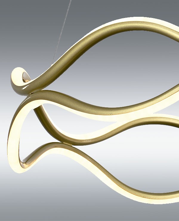 Lámpara colgante Venus con un diseño moderno y de calidad. Su acabado es en pintura epoxy oro. Está realizado en Aluminio con difusor de silicona. Posee tecnología de Led Integrado con 140W de potencia, 11200 lúmenes, mando a distancia con control de intensidad y color CCT variable 4000K-3000K-6000K. Sus dimensiones son Ø80x15x150 cm (Diámetro x Alto x cable).