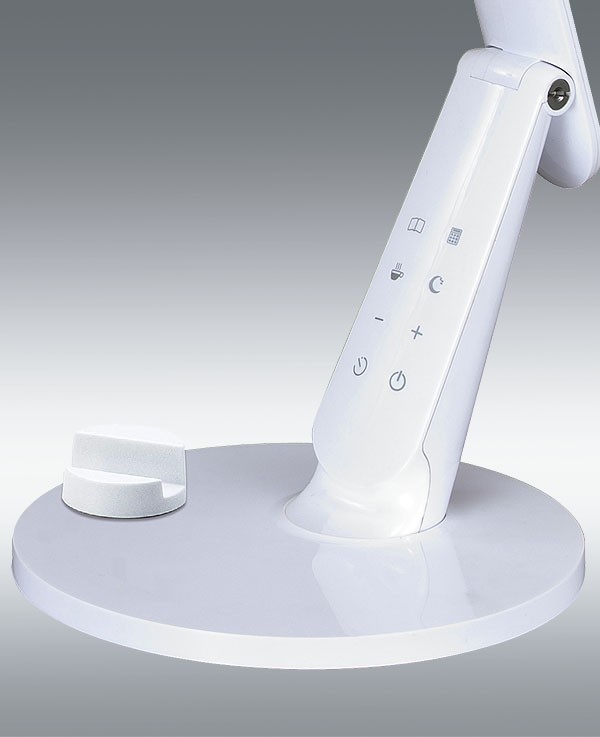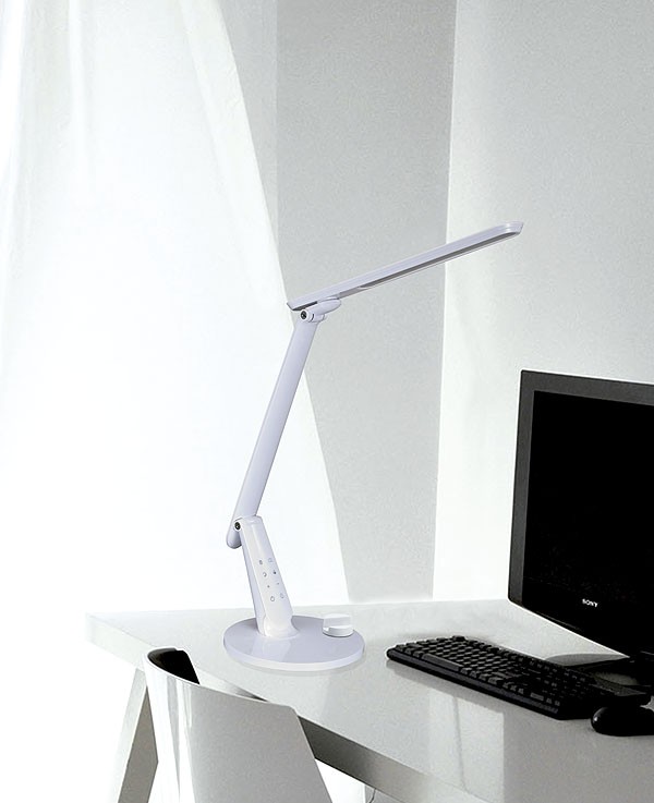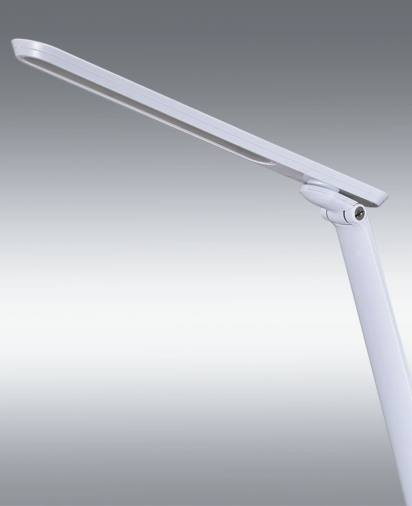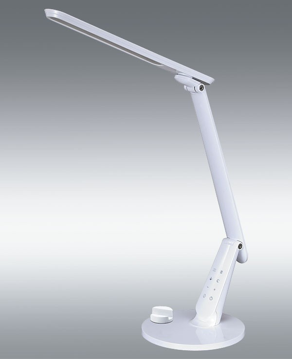 Esta lámpara de mesa pertenece a la familia Flex en la que se destaca su diseño moderno, sencillo y funcional. Consta de cuerpo en Acrílico de color blanco con cabezal rotativo y regulable. Dispone de tecnología con Led Integrado 10W de potencia, 700 lúmenes. Permite ajustar la tonalidad 2700-6400K neutro regulando la intensidad por cuatro niveles mediante sensor táctil. También se facilita la carga de dispositivos mediante su puerto USB de 1,2A y su soporte imantado para móvil. Sus dimensiones son base 20cm x longitud 47,5cm x altura 53,5 cm.