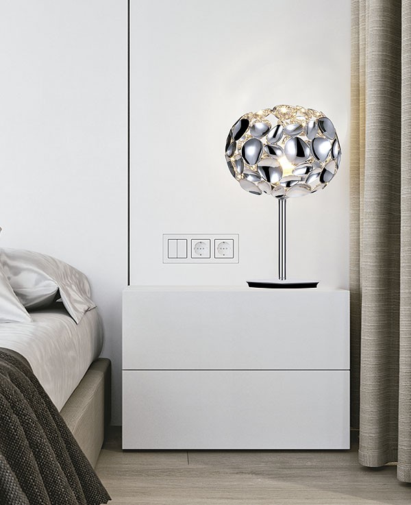 Lampara de mesa con bombilla E27 1x40W dimmer regulador triac – Acabado cromo.