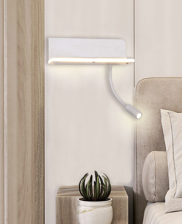 Lámpara de pared LED 7W+3W 450+250 lm 4000K neutro. Cargador USB – Acabado blanco.