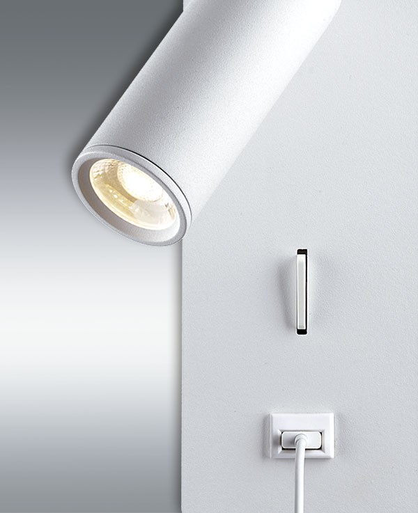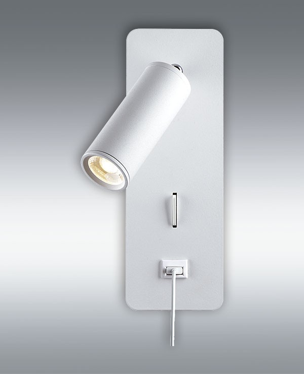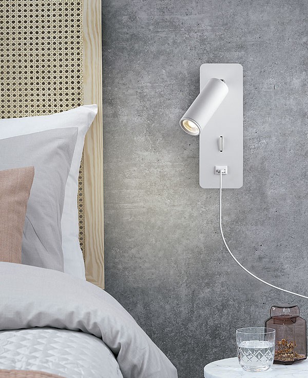 Lámpara de pared LED 3W 300lm, 4000K neutro. Cargador USB – Acabado blanco.