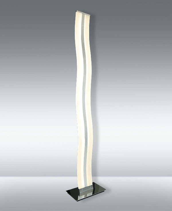 Esta lámpara de suelo pertenece a la familia Dune en la que se destaca su diseño moderno e innovador, inspirado en las dunas del desierto. Está hecha en Aluminio cromado que permite una excelente disipación térmica con metacrilato matizado que difumina la luz a través del material. Dispone de tecnología con Led Integrado 34W de potencia, 2400 lúmenes con la capacidad de ajustar el nivel de iluminación regulando la intensidad con mando a distancia. Con la tonalidad 3000K/4000K. Sus dimensiones son 28x17x150 cm (largo x ancho x alto). Produce un efecto lumínico radial gracias a su diseño longuitudinal permitiendo asi una dispersión homogénea de la luz para cualquier estancia.