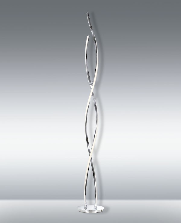 Esta lámpara de suelo pertenece a la familia Helix en la que se destaca su diseño moderno e innovador, inspirado en la helicoide del ADN. Está hecha en Aluminio cromado que permite una excelente disipación térmica con difusor de policarbonato matizado y acabado en Cromo. Dispone de tecnología con Led Integrado 37W de potencia, 3000 lúmenes con la capacidad de ajustar el nivel de iluminación regulando la intensidad con mando a distancia. Permite ajustar la tonalidad desde cálido (CCT 3000K) hasta frío (CCT 6000K) con ajuste gradual mediante mando a distancia. Sus dimensiones son Ø23x165 cm (Diámetro x alto). Produce un efecto lumínico radial gracias a su diseño helicoidal permitiendo así una dispersión homogénea de la luz para cualquier estancia.