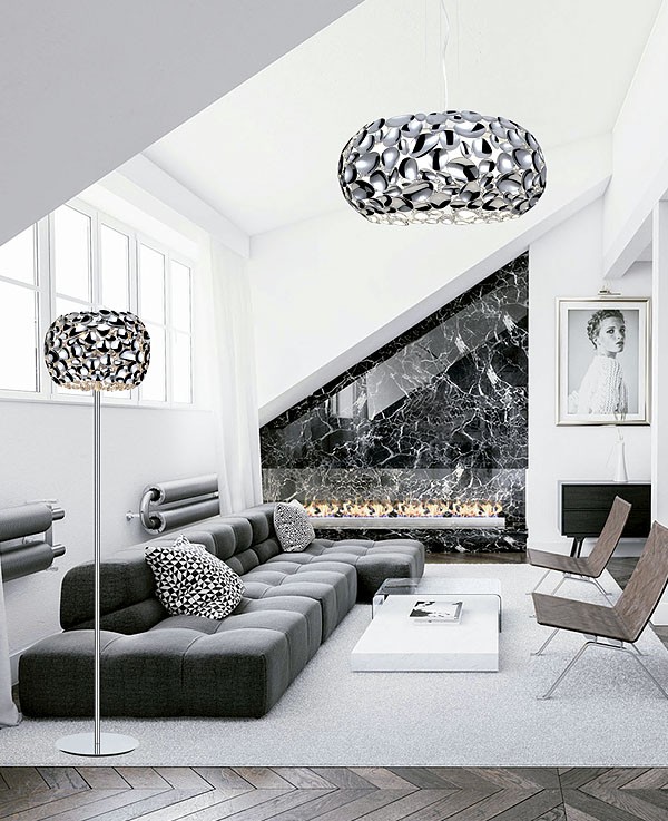 Lampara de suelo, pie con bombilla E27 3x40W dimmer regulador triac – acabado cromo.