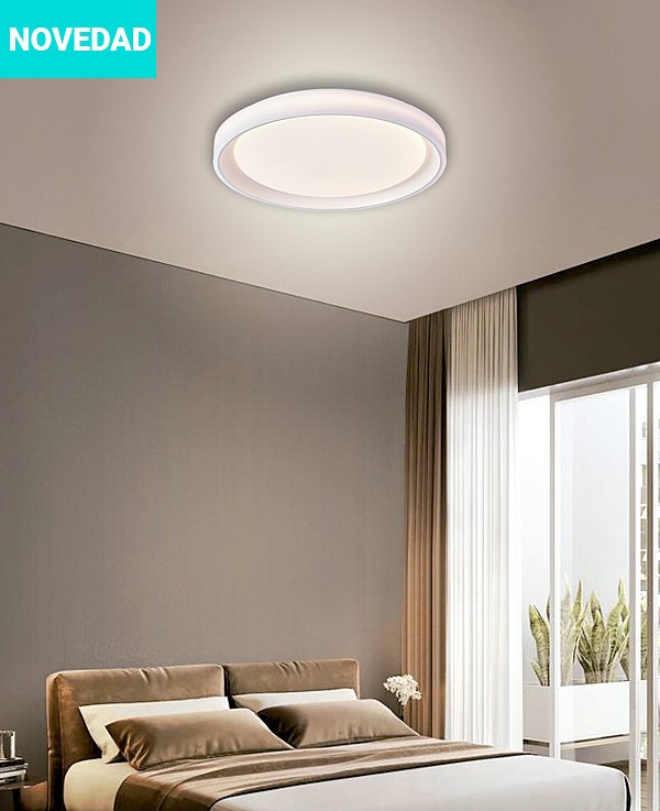 Lámpara plafón LED 72W 5700lm. Mando a distancia control de intensidad y color CCT variable 4000K-3000K-6000K. Acabado blanco.