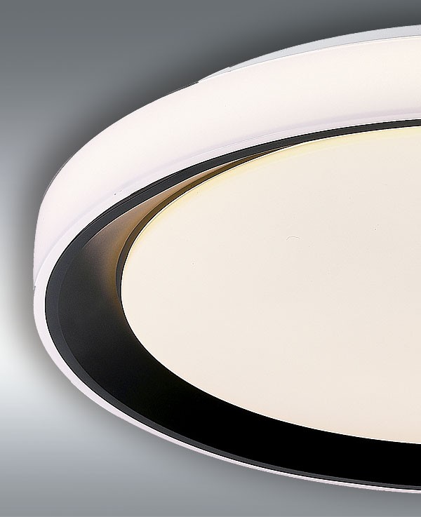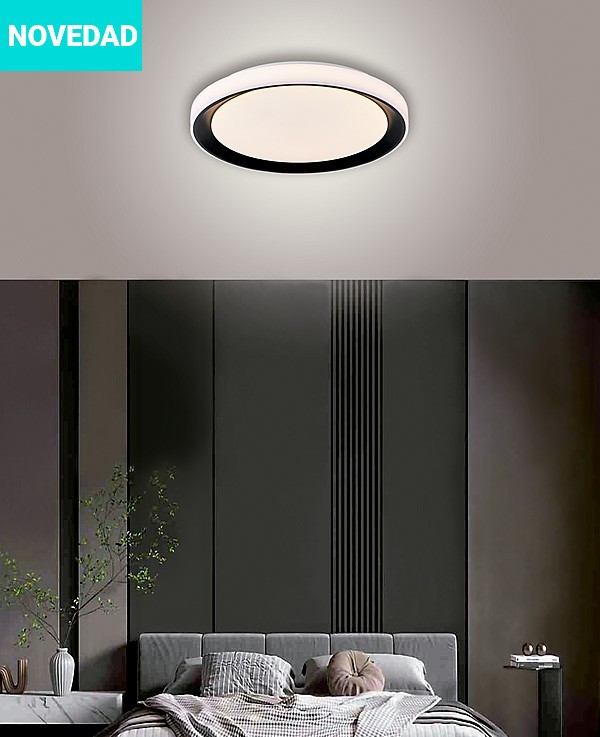 Lámpara plafón LED 72W 5700lm. Mando a distancia control de intensidad y color CCT variable 4000K-3000K-6000K. Acabado negro.