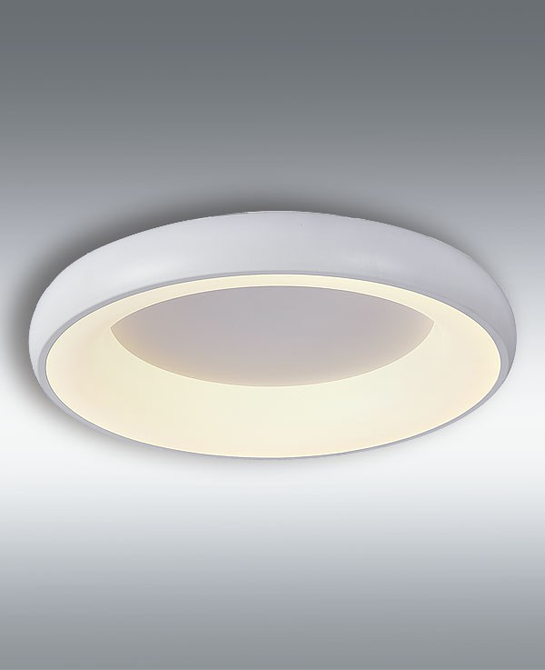 Lámpara de techo plafón Dharma con un diseño moderno y de calidad. Su acabado es en pintura epoxy blanca. Está realizado en Aluminio con difusor de policarbonato. Posee tecnología de Led Integrado con 185W (92+92) de potencia, 8700 lúmenes, mando a distancia con control de intensidad y color CCT variable 4000K-3000K-6000K. Sus dimensiones son Ø80x9 cm (Diámetro x Alto).