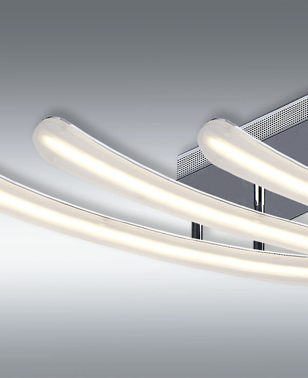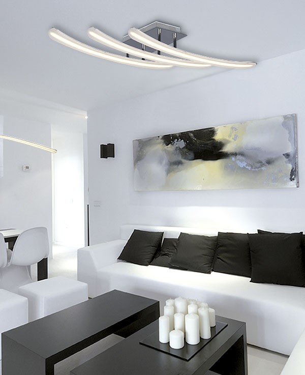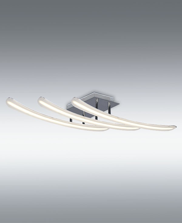 Esta lámpara plafón pertenece a la familia Essence en la que se destaca su diseño moderno e innovador. Está hecha en Aluminio cromado que permite una excelente disipación térmica con difusor en metacrilato que difumina la luz a través del material. Dispone de tecnología con Led Integrado 35W de potencia, 2800 lúmenes. Su tonalidad es de 4000K neutro. Sus dimensiones son 65x25x9 cm (largo x ancho x alto). Produce un efecto lumínico ideal para cualquier dormitorio o cuarto de estudio gracias a sus tres brazos de luz que dirigen todo el flujo lumínico hacia abajo. Lo podemos considerar como un producto económico de altas prestaciones.