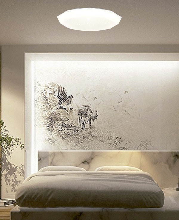 Lámpara de techo plafón LED 96W 7600lm, mando a distancia con control de intensidad y color CCT variable 4000K(96W)- 3000K(96W)- 6000K(96W) – Acabado blanco diamante estrellado.