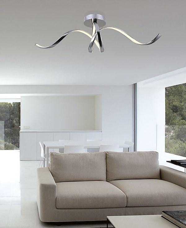Lámpara de techo plafón LED 41W 2650lm RF/App dimmer + CCT color variable. Acabado cromo + difusor silicona.