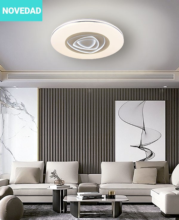 Lámpara plafón LED 120W 9600 lm Mando a distancia control de intensidad y color CCT variable 3000K-6000K. Acabado blanco. Mando a distancia INCLUIDO.
