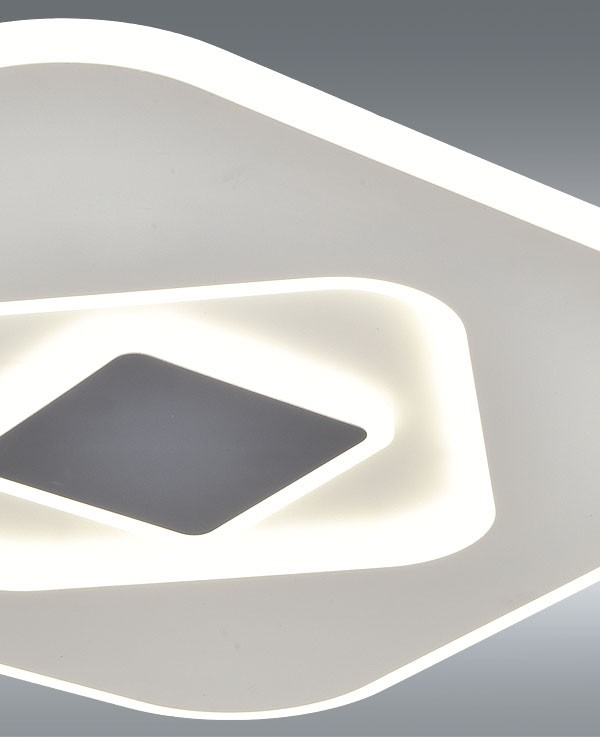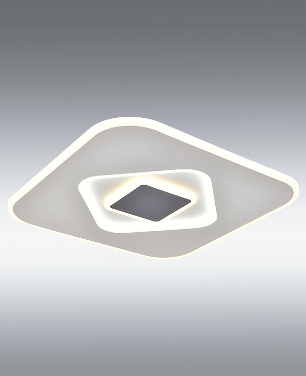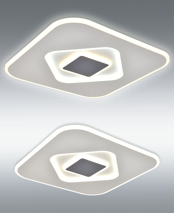 Lámpara plafón LED 90W 6300 lm. Mando a distancia control de intensidad y color CCT variable 4000K-3000K-6000K. Acabado blanco con el centro en gris plomo.