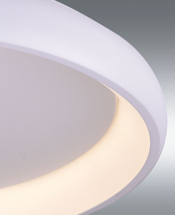 Lámpara plafón Zen con un diseño moderno y de calidad. Su acabado es en pintura epoxy blanca. Está realizado en Metal con difusor de policarbonato matizado. Posee tecnología de Led Integrado con 100W de potencia, 7000 lúmenes y con tono neutro 4000K. Driver regulable triac dimmer incluido. Sus dimensiones son Ø81x9 cm (Diámetro x alto).