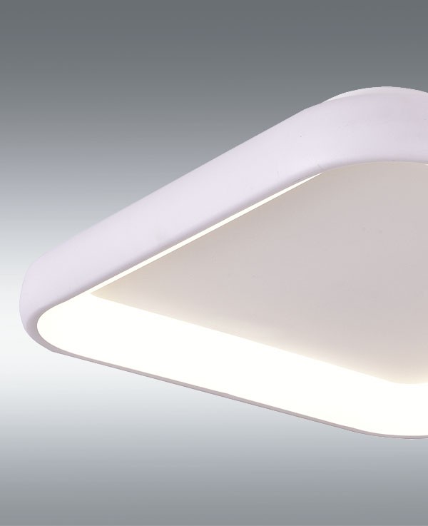 Lámpara plafón Zen con un diseño moderno y de calidad. Su cabado es en pintura epoxy blanca. Está realizado en Metal con difusor de policarbonato matizado. Posee tecnología de Led Integrado con 42W de potencia, 3000 lúmenes y con tono neutro 4000K. Con la opción: D con driver regulable triac dimmer. Sus dimensiones son 48x48x9 cm (largo x ancho x alto).